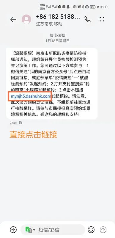3.通過(guò)點(diǎn)擊官方短信中的鏈接參與預(yù)約登記。