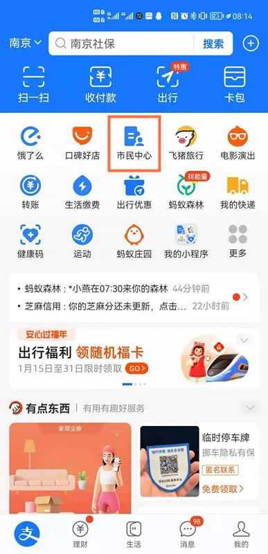 2.通過(guò)支付寶搜索“我的南京”小程序,或通過(guò)支付寶→“市民中心”→“我的南京”小程序參與預(yù)約;