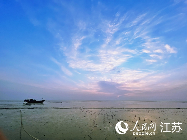 坐看灘涂的日出,在小船上享受一份寧靜。人民網(wǎng) 馬燾燾攝
