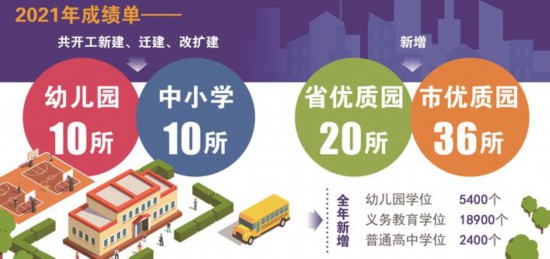 辦人民滿意教育永無(wú)止境。記者從17日剛剛舉行的全市教育工作會(huì)議上獲悉,2022年我市將繼續(xù)堅(jiān)持均衡發(fā)展,全面擴(kuò)大優(yōu)質(zhì)資源供給,擬新建、遷建、改擴(kuò)建幼兒園8所、中小學(xué)10所,新開(kāi)辦幼兒園13所,預(yù)計(jì)可新增中小學(xué)學(xué)位20000余個(gè)、幼兒園學(xué)位2600個(gè)。