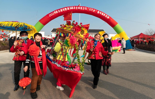 在灌云縣今年舉行的“三下鄉(xiāng)”活動中,由于是市縣聯(lián)動,耳目一新的文藝演出、專家科技講座、疫情防控服務等各類文化年貨更是格外受到農(nóng)民的歡迎。特別是各類文化年貨倍受群眾青睞,農(nóng)業(yè)科技書籍、科普讀物、衛(wèi)生常識、農(nóng)業(yè)知識講座和文藝節(jié)目攤位前擠滿了人。獲得市“三下鄉(xiāng)”活動先進集體的灌云縣農(nóng)業(yè)農(nóng)村局相關負責人介紹,為渴望致富的農(nóng)戶送去先進的科技知識、肥料、籽種,為渴望精神食糧的農(nóng)民送去書籍,為辛苦勞作了一年的農(nóng)民送去他們喜聞樂見的文藝節(jié)目,為已提前忙年的農(nóng)民送去“福”字和春聯(lián)……“只要是農(nóng)民需要的,就在第一時間送到農(nóng)民手中,讓農(nóng)民真切地體會到黨和政府的關懷!