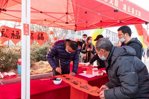 “是黨的好政策幫我脫了貧,過去的一年,我家還搬進了改善后的農(nóng)房別墅,真正過上了好日子!1月18日上午,江蘇省灌云縣侍莊街道侍圩村黨群服務中心,2022年連云港市暨灌云縣文化科技衛(wèi)生“三下鄉(xiāng)”(以下簡稱“三下鄉(xiāng))集中服務活動舉行。在送春聯(lián)區(qū)域,該村居民侍大爺請書法家為自己書寫了一副自擬的對聯(lián)“今朝已圓小康夢,來歲再繪錦繡圖”,抒發(fā)新時代農(nóng)民富裕起來后的豪情。