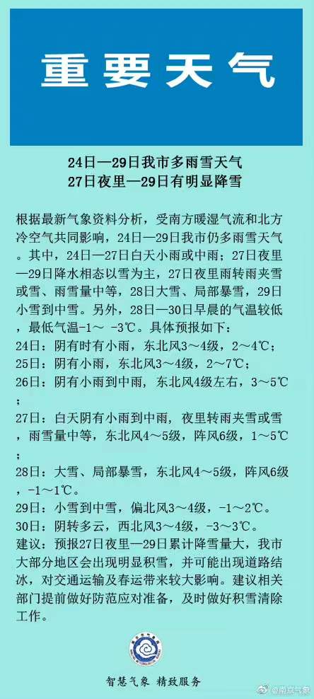 大雪,局部暴雪!南京27日夜里至29日有明顯降雪