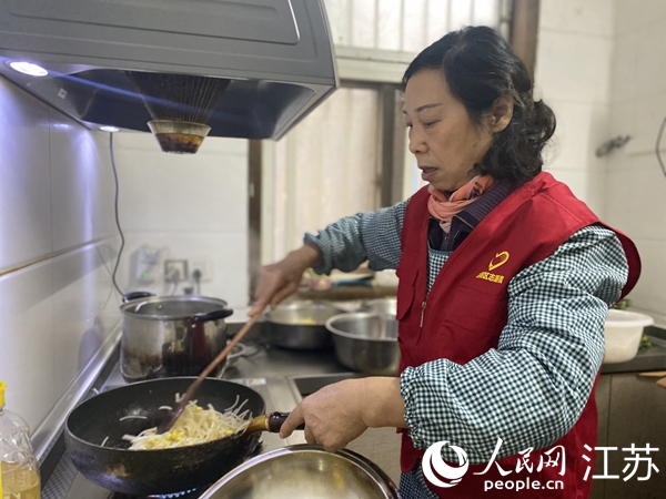正在做“年夜飯”的社區(qū)志愿者華翠紅。朱莎攝