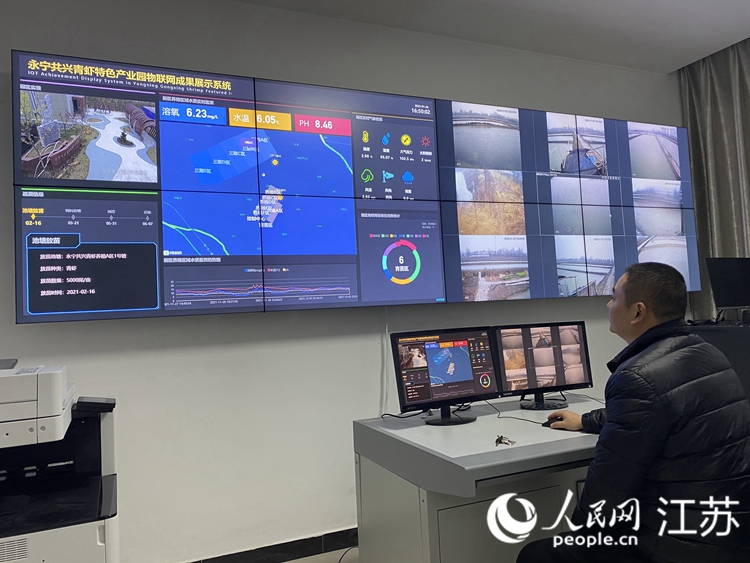 永寧青蝦特色產(chǎn)業(yè)園物聯(lián)網(wǎng)控制中心內(nèi)景。人民網(wǎng)楊維瓊 攝