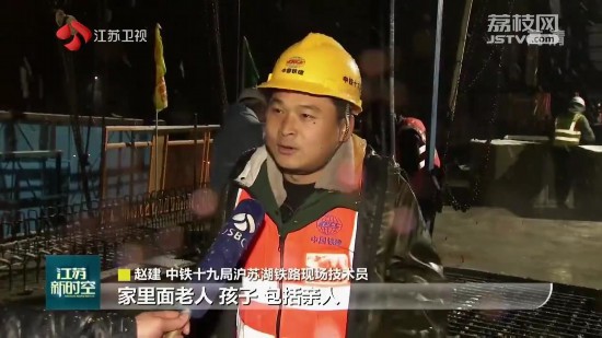 中鐵十九局滬蘇湖鐵路現(xiàn)場技術(shù)員趙建說:“家里面老人、孩子,包括親人,都盼著我們能回家過個團(tuán)圓年,但是我們?yōu)榱藴K湖鐵路建設(shè),加快它的進(jìn)度,我們選擇了留守在這個工地。”