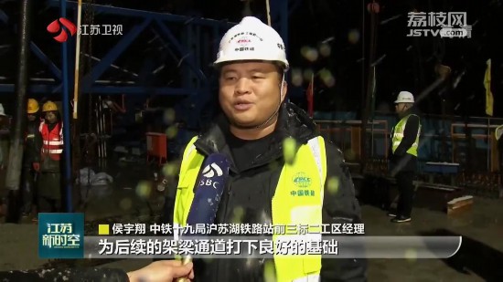 雪夜奮戰(zhàn),滬蘇湖鐵路江蘇段首跨連續(xù)梁合龍