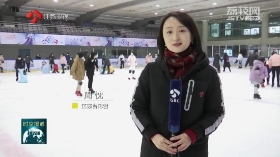 江蘇臺記者周忱說:“雖然戶外溫度較低,但是南京奧體中心滑冰場的氣氛卻十分火熱。現(xiàn)在是上午十點半,你看,冰面上已經(jīng)迎來了很多的市民朋友!