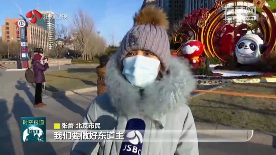 江蘇臺記者黎明說:“我現(xiàn)在是在北京東單的街頭,在路口我們可以看到設(shè)置了多個有著春節(jié)和冬奧元素的景觀小品,營造出一片歡樂喜慶的氛圍。很多路過的市民也是爭相和冬奧會的吉祥物雪容融、冰墩墩合影留念!