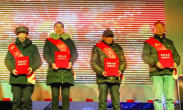 雖說是小村里的表彰,現(xiàn)場卻很隆重。當舞臺電子屏播放完見義勇為、熱心公益、致力環(huán)衛(wèi)、移風易俗、孝老愛親、引領創(chuàng)業(yè)、勵學尚德等9名首批文明之星的事跡視頻后,他們身披綬帶登上領獎臺,將證書抱在胸前,現(xiàn)場村民爆發(fā)出一陣熱烈的掌聲。