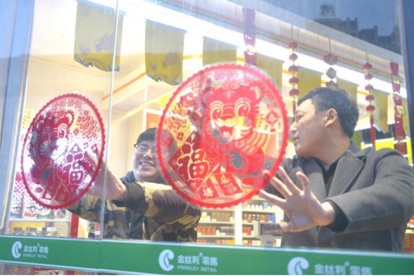 今年春節(jié),佟經(jīng)理再次來到“合一家超市”,圍繞農(nóng)歷“虎”年主題,并結(jié)合店堂實(shí)際裝修條件進(jìn)行布置,同時(shí),佟經(jīng)理也及時(shí)告知春節(jié)期間的訪銷周期、貨源投放等信息,提醒老郁提前做好備貨。