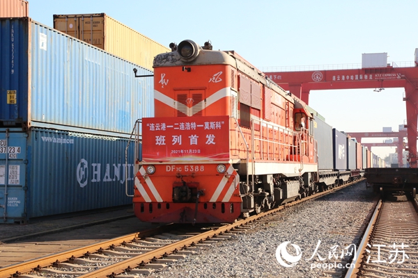 連云港—二連浩特—莫斯科班列去年11月從中哈物流基地首發(fā)。 楊開(kāi)林?jǐn)z