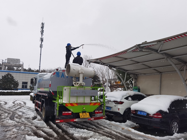 考慮到雪天對(duì)出行的影響,7日一早,楊陽(yáng)帶著9名運(yùn)維人員提早一小時(shí)出發(fā),帶上了融雪劑、稻草墊、鏟子等防雪掃雪應(yīng)急物資,兵分五路趕往南京轄區(qū)內(nèi)滬蓉、長(zhǎng)深高速上的20座服務(wù)區(qū)充電站進(jìn)行巡視。