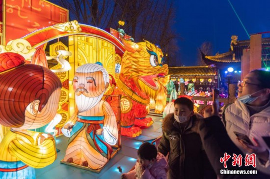 2月13日,江蘇南京,民眾在城南夫子廟內(nèi)欣賞展示的彩燈。當(dāng)日是農(nóng)歷正月十三,南京城南夫子廟景區(qū)、門東老街等處彩燈璀璨。在南京,民間有“正月十三上燈,十五鬧元宵,十八落燈”的傳統(tǒng)習(xí)俗。泱波 攝