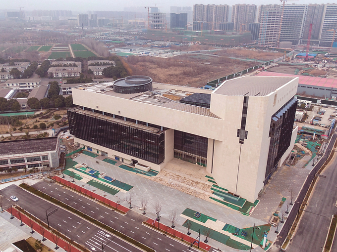 南京江北圖書館日前已基本完工。江北圖書館定位為國家一級圖書館,為公眾提供公益性終身學(xué)習(xí)、開放、自由、社交與休閑為一體的閱讀空間,突破單一的圖書館功能,使其成為國際化現(xiàn)代化的“城市文化客廳”和“市民書房”。圖為15日,空中俯瞰江北圖書館項(xiàng)目建設(shè)現(xiàn)場。 本報(bào)記者 陳儼 攝