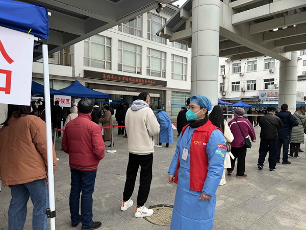 蘇州中信銀行員工志愿者在核酸檢測點協(xié)助維持秩序 中信銀行蘇州分行供圖