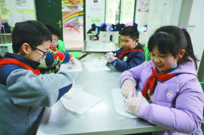 昨天,小學(xué)生在鼓樓區(qū)南財大附小參加小廚神社團活動。 南京日報/紫金山新聞記者 徐琦 攝