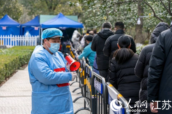 昆山市物業(yè)人員在維護(hù)核酸檢測(cè)秩序