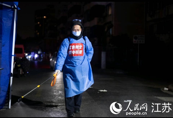 昆山市物業(yè)人員深夜繼續(xù)在小區(qū)進(jìn)行消殺