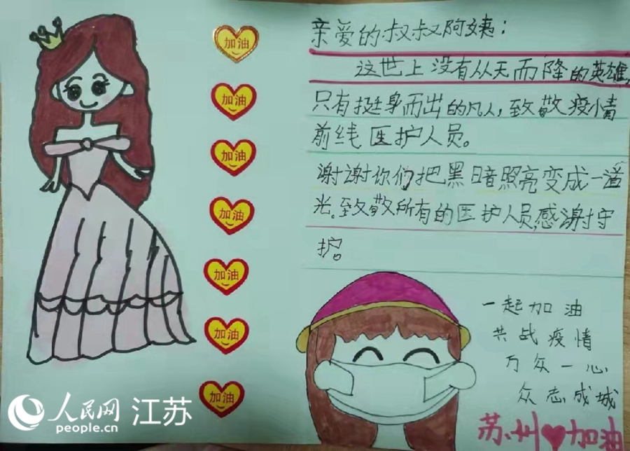 2月20日,在吳中區(qū)甪直新城華府小區(qū)核酸檢測點,一名剛做完核酸采樣的小女孩突然將一張小卡片塞到醫(yī)護人員彭巍手中。彭巍展開卡片瞬間“破防”。原來,卡片上寫著一段話:“親愛的叔叔阿姨,這世上沒有從天而降的英雄,只有挺身而出的凡人,謝謝你們把黑暗照亮,變成一道光!迸砦「嬖V記者:“那天很冷,看了卡片讓他心里特別溫暖!