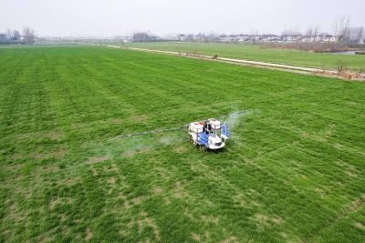 昨天,江北新區(qū)盤城街道雙城社區(qū)農(nóng)戶正在麥田噴灑農(nóng)藥。 南京日報/紫金山新聞記者 孫中元 通訊員 潘萍 攝