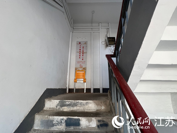 為緩解老年人上下樓途中的疲勞,樓道安置了“愛心坐騎”。百合攝