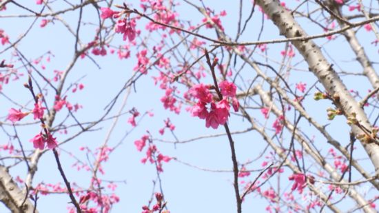 連續(xù)幾日春光明媚,南京中山植物園里的早櫻按捺不住,紛紛綻放。在北園球宿根花卉園入口的道路旁,早櫻品種椿寒櫻已進入盛花期,還有大寒櫻、鐘花櫻也已盛開,隨著目前氣溫的逐步升高,預(yù)計本周末即將進入觀賞期,預(yù)計下周進入最佳的觀賞期。
