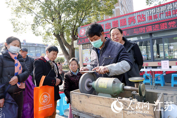 簡(jiǎn)樸莊重的頒獎(jiǎng)儀式后,來(lái)自靖江市民政局、城管局、人社局、衛(wèi)健委、人民醫(yī)院、公安局、市場(chǎng)監(jiān)管局、文體旅游局、靖城街道等單位,以及各志愿組織的志愿者們,投身到便民服務(wù)、政策咨詢、健康義診等志愿服務(wù)中,為市民理發(fā)、磨剪刀、量血壓,送上各類實(shí)用政策解讀!斑@個(gè)‘小紅帽’服務(wù)態(tài)度好,手腳也快!”眼見(jiàn)自家拿來(lái)的刀具被志愿者管恒華磨得锃亮,69歲的市民姚翠英樂(lè)得連連點(diǎn)贊。