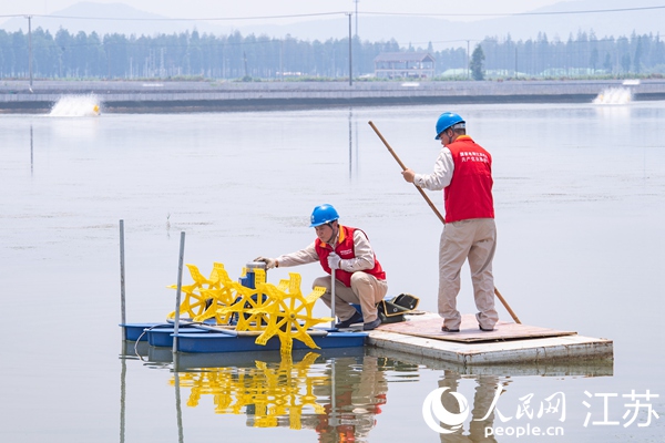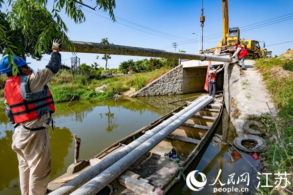 服務(wù)隊前往國家級農(nóng)業(yè)產(chǎn)業(yè)園進(jìn)行蟹塘用電服務(wù)。南京供電公司供圖