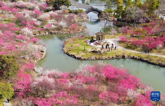 3月6日,游客在江蘇揚(yáng)州瘦西湖風(fēng)景區(qū)賞花游玩(無(wú)人機(jī)照片)。