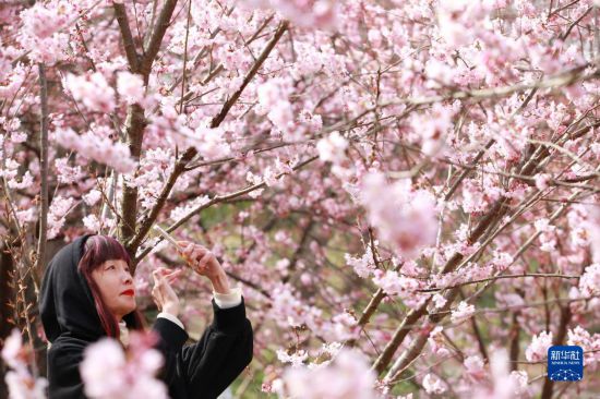 3月6日,游客在南京中山植物園賞櫻拍照。