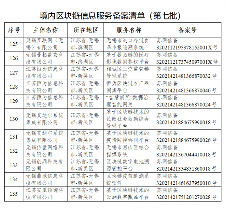 無錫11個項目上榜第七批境內(nèi)區(qū)塊鏈信息服務(wù)備案清單 占總數(shù)4.1%