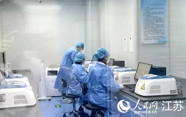 醫(yī)務(wù)人員在加班加點對新冠核酸檢測樣本進行檢測。東?h委宣傳部供圖