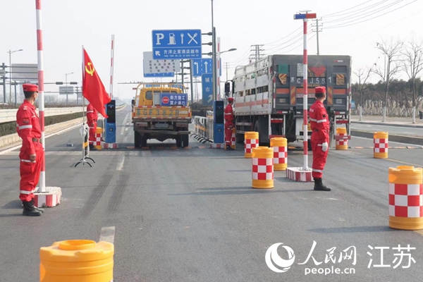 圖為志愿者在一疫情防控卡點值守。徐圩新區(qū)供圖