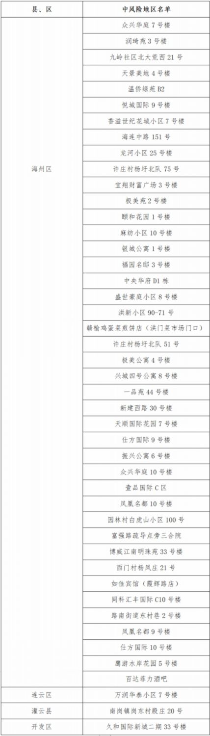 連云港市45個(gè)中風(fēng)險(xiǎn)地區(qū)詳細(xì)名單(2022年3月10日)