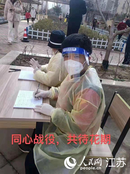 脫下工裝,穿上紅馬甲,戴上護目鏡的江蘇豪森藥業(yè)集團有限公司青年人才李政、王珍珍主動報名所在社區(qū)志愿服務,李政負責所在小區(qū)核酸檢測登記工作,王珍珍負責所在小區(qū)核酸檢測區(qū)域消殺工作,“只要疫情一天不解除,我們就會一直堅持下去!彼麄冇米约旱膱(zhí)著和堅守詮釋了青年人才的擔當和作為。