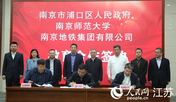 浦口區(qū)委常委劉小平、南京師范大學(xué)教育合作管理處處長(zhǎng)熊鴻生、南京市地下鐵道工程建設(shè)指揮部副指揮長(zhǎng)蔣興寶代表合作三方簽訂了《教育合作協(xié)議書》。