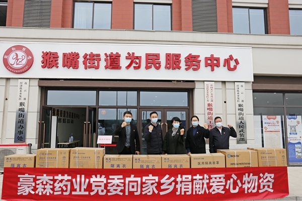 豪森藥業(yè)黨委捐贈防疫物資。連云港開發(fā)區(qū)供圖
