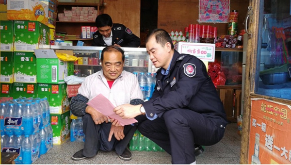 圖為水鄉(xiāng)黨員志愿服務(wù)隊對零售客戶陳廣堂進(jìn)行幫扶指導(dǎo) 姜堰煙草供圖