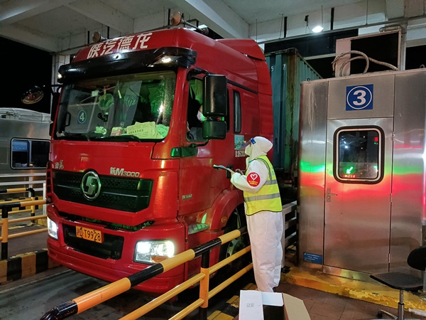 志愿者參與高速卡口防疫工作。吳江煙草供圖