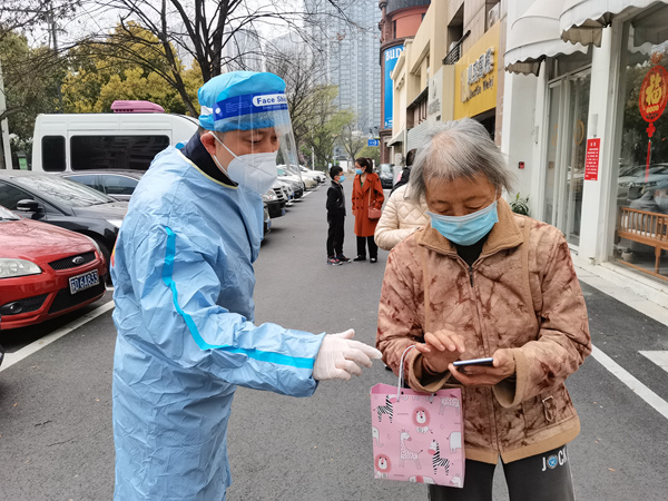 3月20日,氣溫驟降,常州市煙草專(zhuān)賣(mài)局(公司)領(lǐng)導(dǎo)班子帶頭組成的第二批次25名志愿者于清晨5點(diǎn)50分準(zhǔn)時(shí)在指定地點(diǎn)集合!罢(qǐng)?zhí)崆皽?zhǔn)備好核酸采樣碼”“請(qǐng)保持一米距離”“請(qǐng)出示身份證”“這是給您配送的菜”“有任何需要請(qǐng)與我們聯(lián)系”……黨員志愿者們不停地重復(fù)著提醒語(yǔ),確保參加核酸檢測(cè)的每一個(gè)市民能快速、準(zhǔn)確完成檢測(cè),同時(shí)做好排隊(duì)市民的心理疏導(dǎo)。