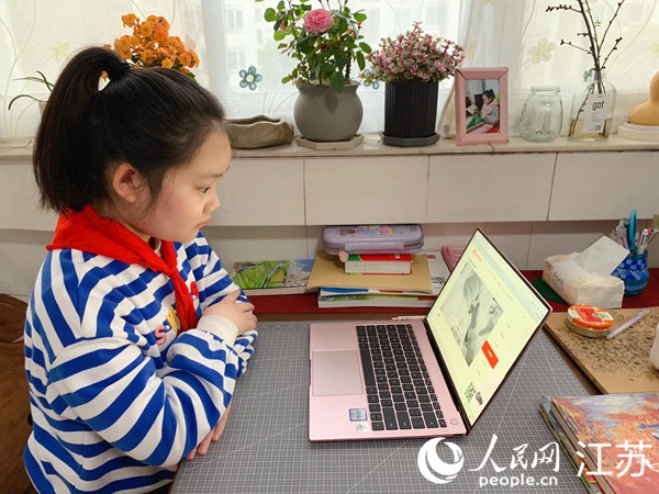 南京市朝天宮民族小學(xué)學(xué)生劉祎一參與線上學(xué)習(xí)。校方供圖