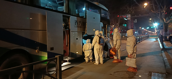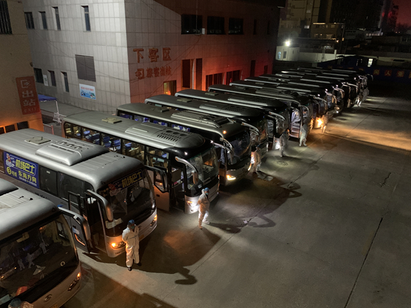 駕駛師傅們夜間執(zhí)行轉(zhuǎn)運人員任務(wù)。連云港市交通控股供圖