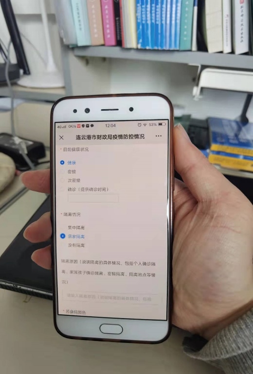 連云港市財(cái)政局員工通過小程序填報(bào)健康信息。江蘇移動(dòng)供圖