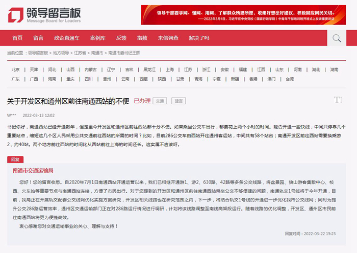 急難愁盼|坐公交到高鐵站耗時(shí)過(guò)長(zhǎng) 南通市交通運(yùn)輸局:優(yōu)化方案正在研究