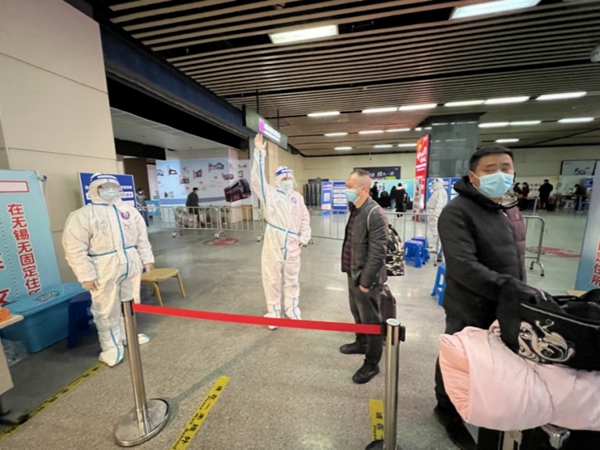 志愿者在車站協(xié)助開展核酸檢測(cè)查驗(yàn)。無錫煙草供圖