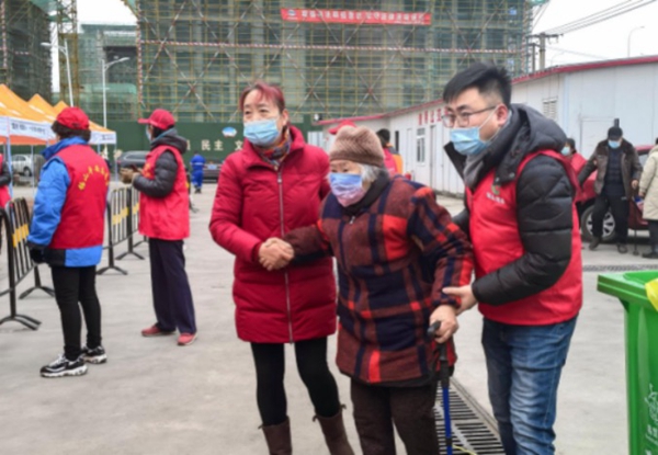 志愿者攙扶老人做核酸檢測。錫山煙草供圖