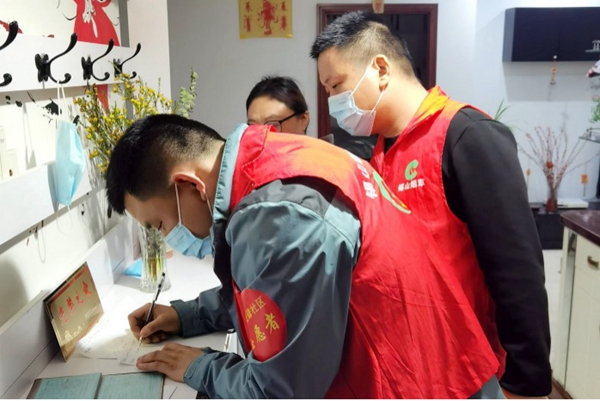 剛過中午,無錫市錫山區(qū)煙草專賣局的志愿者們就在一層層爬樓敲門。“您好,請問有人嗎,我是區(qū)里的志愿者,為保障疫情防控工作,現(xiàn)在需要登記信息,麻煩了。”