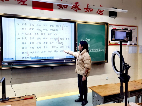 漆橋中心小學(xué)的老師正在通過直播授課。諸梅美攝