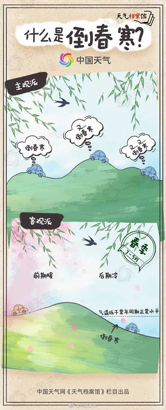 一部分人是“感受先行”,只要在春天感受到了乍暖還寒的降溫,那么就會主觀地認為是“倒春寒”。但“倒春寒”這名字可不是隨便叫的,在氣象學上 它有著嚴格的定義:每年春季(3月至5月)出現(xiàn)的前期暖、后期冷,且后期氣溫明顯低于正常年份的現(xiàn)象。